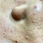 The cyst with the tiny face. Looks like popcorn coming out. There is a mole on top as well. Mr. PopZit 1409