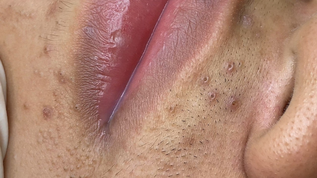 February 16, 2026 Sac Dep Spa Such hard, dry debris at the lips and chin. Relax Every Day SacDepSpa #1098 P2