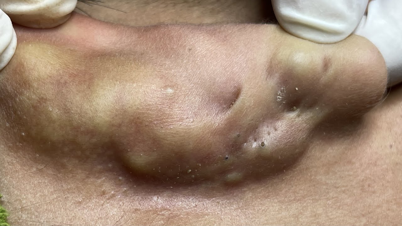 Giant blackheads imbedded in scar tissue extracted. Common occurrence with surgical procedures. Mr. PopZit 280226